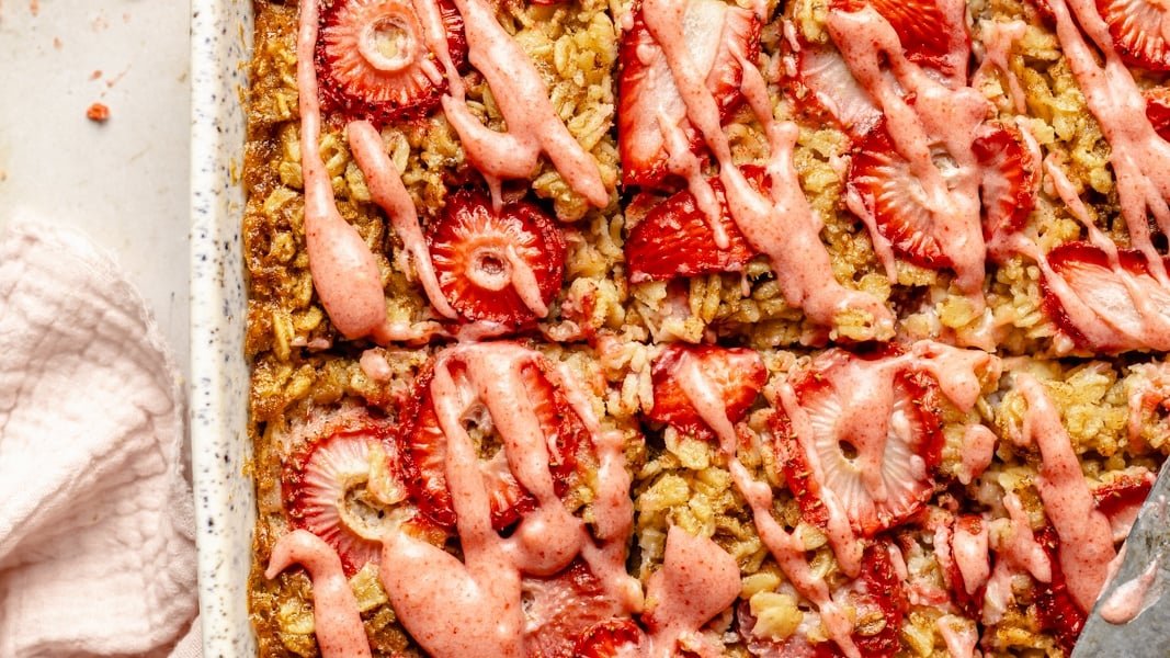 Bake the oatmeal: Pour combination into the ready pan and easy the highest. Prime with the remaining half of the strawberries. Bake till the perimeters are barely golden brown and the middle is about and a knife comes out largely clear with only a few crumbs hooked up, 35 to 45 minutes. Take away from the oven and funky for not less than 10 minutes.