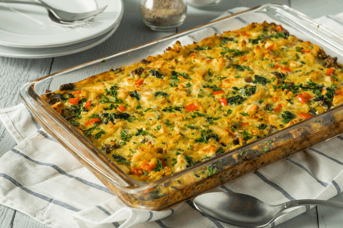 This savory egg casserole delivers balanced taste, creamy texture, and satisfying heartiness in each chunk.