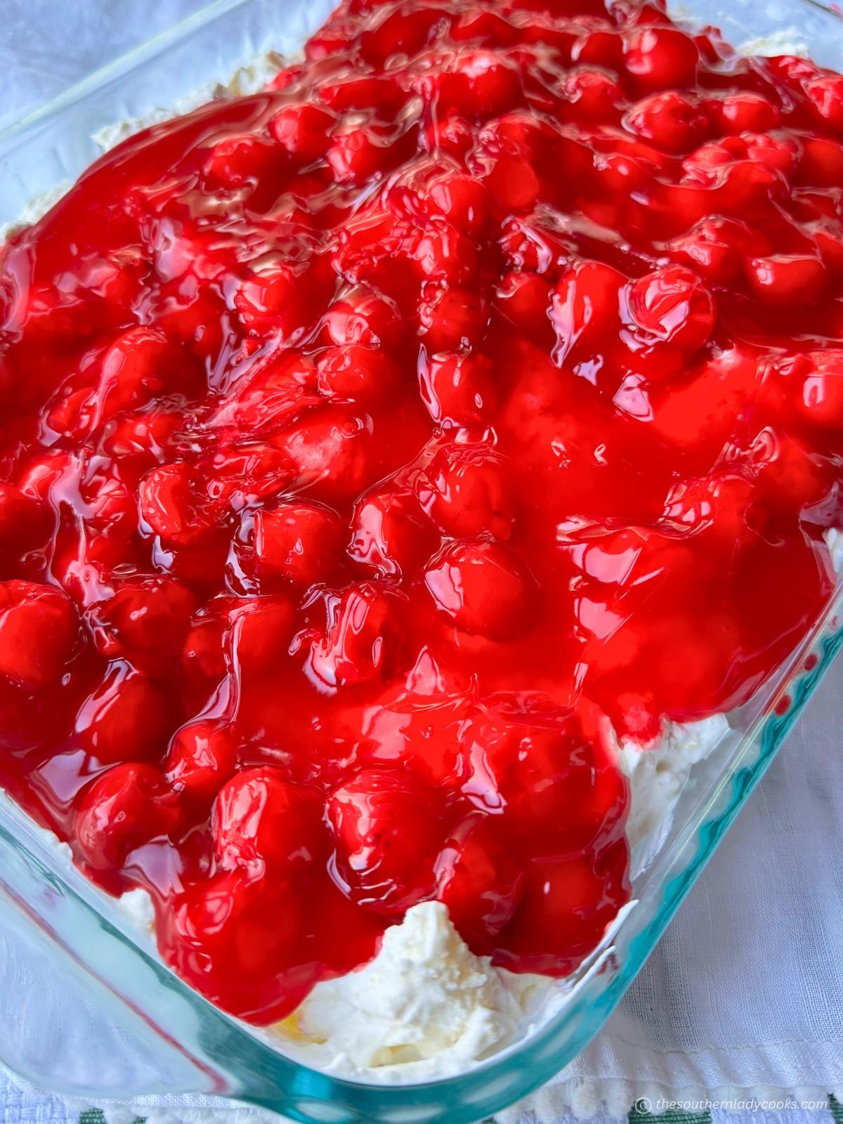 Spoon cherry pie filling excessive and unfold evenly. Place in fridge for not less than 1 hour to permit the flavors to meld and the dessert to set. Serve chilly.