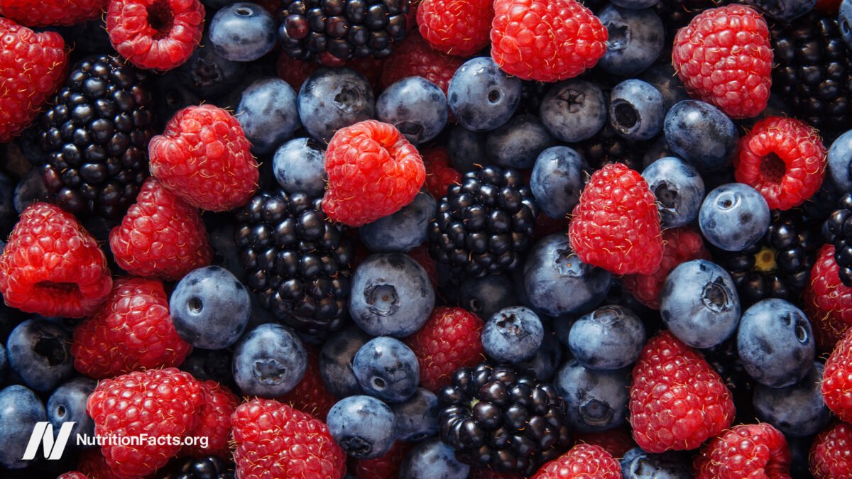 What occurs when blueberries are added to a high-fat, high-glycemic-load meal consisting of white potatoes, white bread, ham, cheese, and butter? Including a single cup of blueberries triggered a big drop in IL-6 from that meal, as you possibly can see under and at 1:15 in my video Which Meals Are Anti-Inflammatory?.