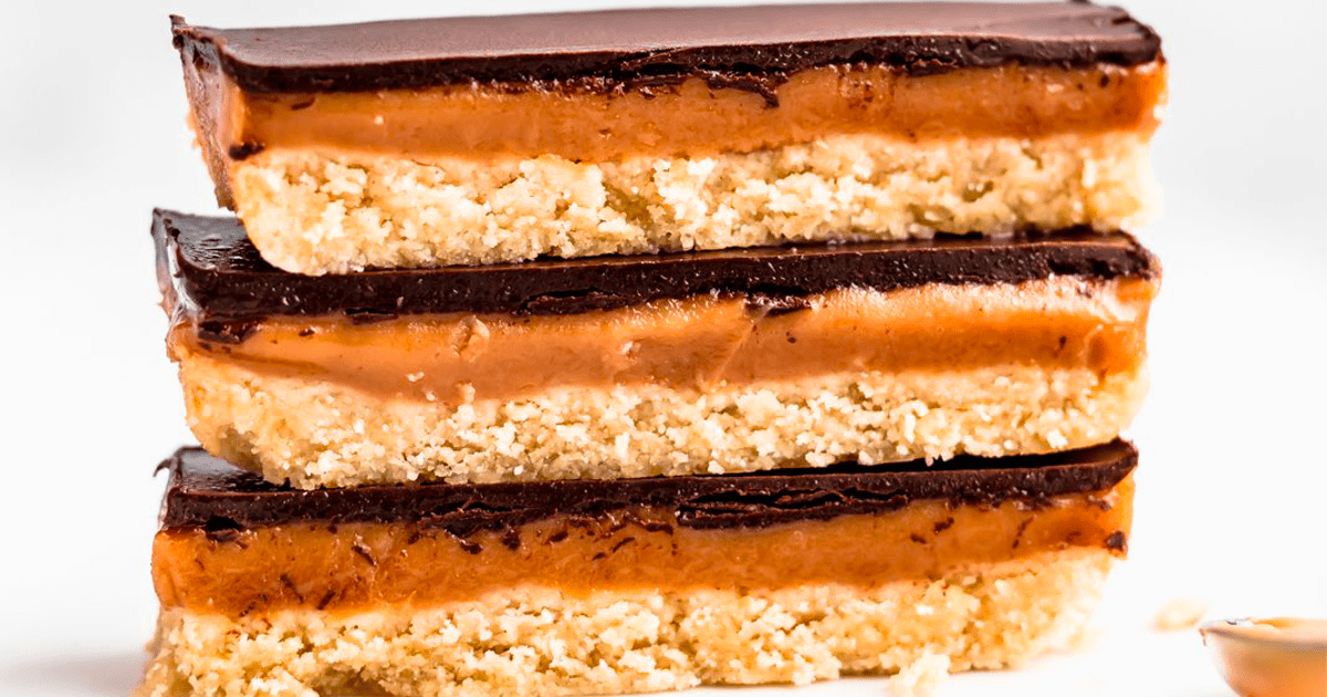 A selfmade, better-for-you tackle the sweet bar everyone knows and love. There’s a layer of almond flour shortbread, a peanut butter caramel center, and a darkish chocolate topping. Naturally sweetened, vegan and gluten free!