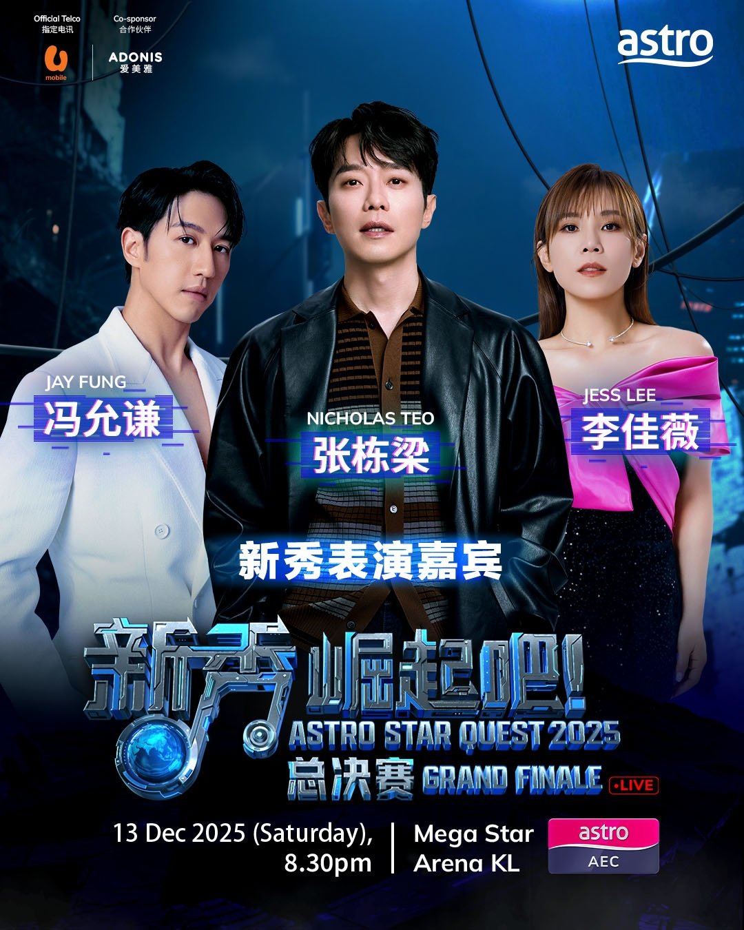 Which eight excellent contestants will make it to the ultimate stage? The reply can be revealed this Saturday (December 6) on Astro Star Quest 2025 Astro《新秀 崛起吧!》. You possibly can watch the dwell broadcast concurrently on Astro AEC (Channel 306), Astro GO, On Demand, and sooka, and witness the delivery of the subsequent Malaysian famous person!