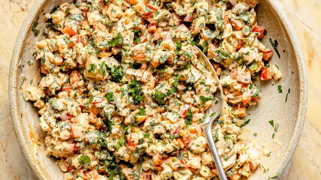 Creamy, spicy hen salad made with recent herbs, a lift of veggies, and a kick of warmth from sriracha. This simple hen salad recipe packs 30g of protein and is scrumptious scooped up with pita chips or crackers, or served in a sandwich or wrap!