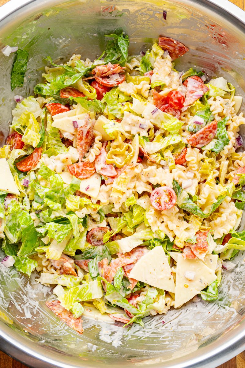 The entire flavours of a grinder sandwich in a creamy pasta salad!