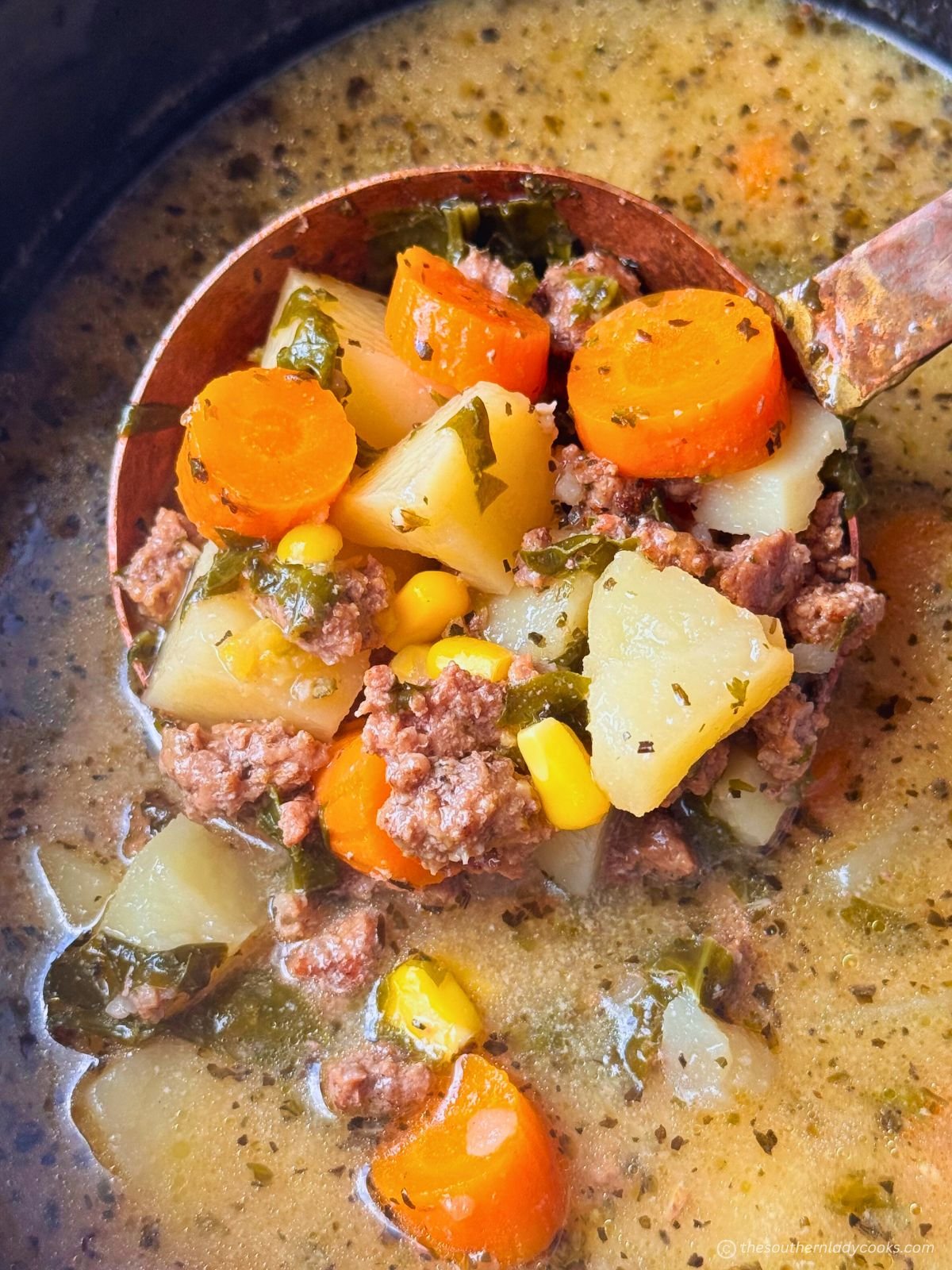 You’ll be able to swap out the hamburger for floor beef or Italian sausage. You might additionally add in inexperienced beans, okra or celery. Miss the spinach if you happen to like and you’ll simply swap up the spices.