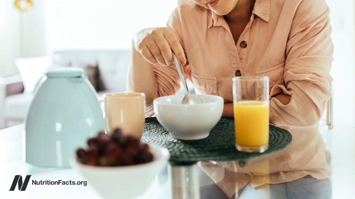 Fiber-depleted meals get quickly absorbed early on, although, a lot of it by no means makes it all the way down to the decrease intestine. As such, if our weight loss plan is low in fiber, no marvel we’re consistently hungry and overeating; our mind retains ready for the meals that by no means arrives. That’s why individuals who even bear stomach-stapling surgical procedures that go away them with a tiny two-tablespoon-sized abdomen pouch can nonetheless eat sufficient to regain a lot of the weight they initially misplaced. With out ample fiber, transporting vitamins down our digestive tract, we might by no means be totally satiated. However, as I described in my final video, one of the vital profitable experimental weight-loss interventions ever reported within the medical literature concerned no fiber in any respect, as you possibly can see right here and at 2:47 in my video Meals Designed to Hijack Our Appetites.