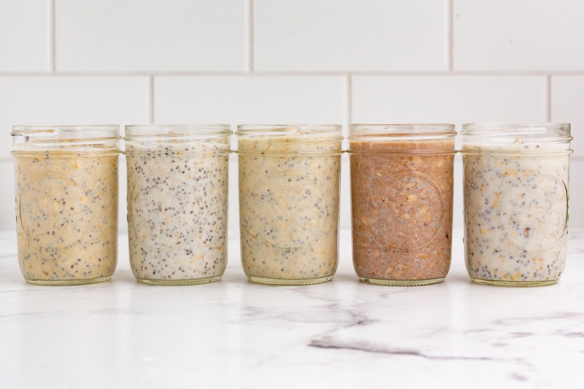 Should you’ve by no means made them earlier than, in a single day oats are merely rolled oats combined with milk (or dairy-free milk) and left within the fridge in a single day. By morning, the oats are smooth, creamy, and able to eat—no cooking required!