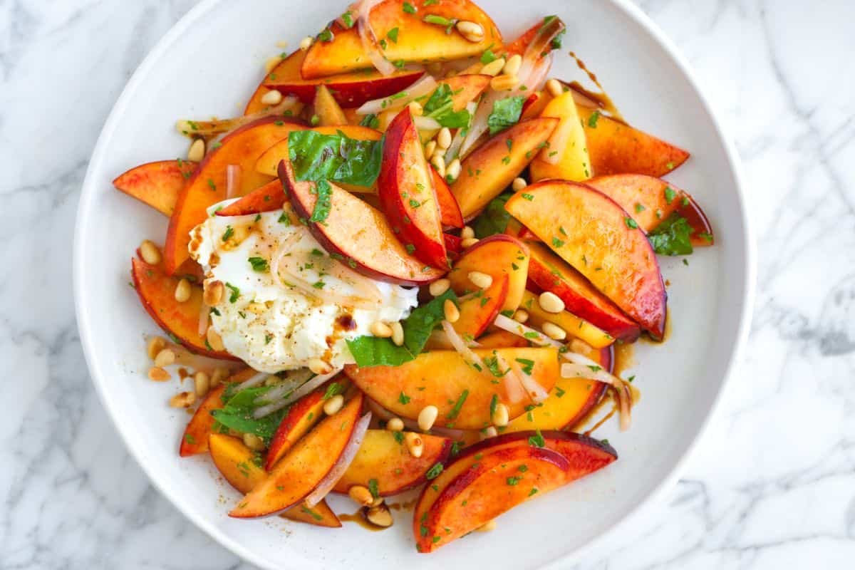 It’s acquired all the things you want: recent, candy peaches, creamy burrata cheese, a zippy dressing, summer time herbs, and buttery toasted nuts for some crunch. I’m obsessed and assume you can be, too. Get pleasure from as a summery dinner or on the aspect to your subsequent cookout with grilled hen, marinated pork chops, or grilled steak!