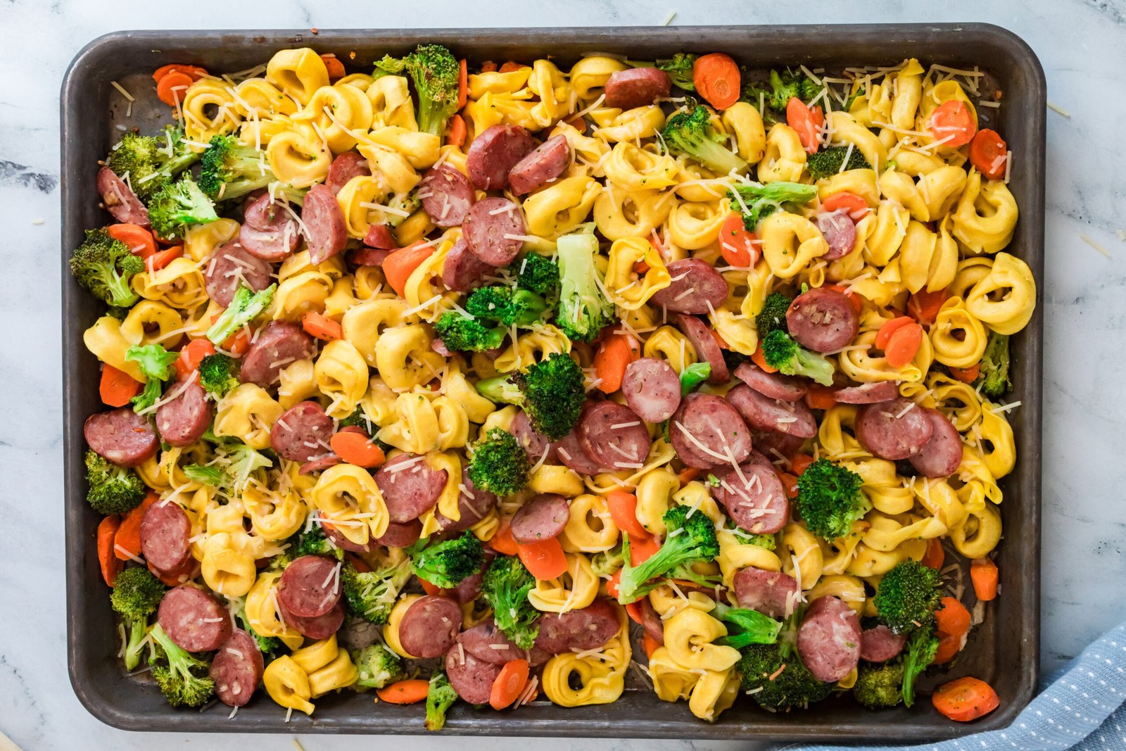 Sheet Pan Tortellini Bake with Kielbasa & Veggies