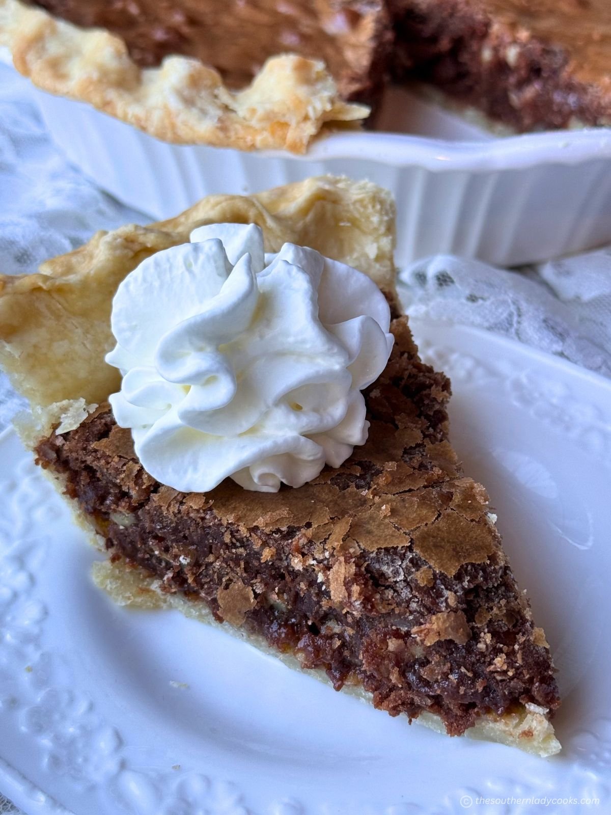 This pie is fudgy and scrumptious. It’s described as a brownie in a pie shell, and it’s excellent for any event!